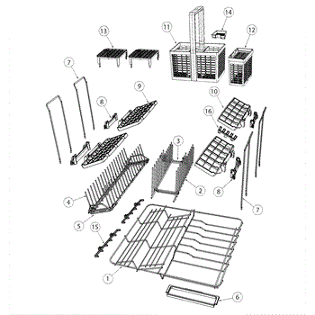 A lower base rack assembly that supports dishes and cookware and restores proper loading and sliding function in the dishwasher. Replaces a worn, bent, or damaged lower rack to keep items secure during cycles. What it does: