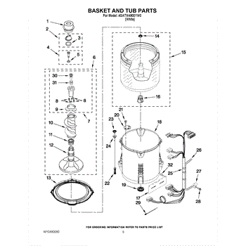 Washer tub seal prevents water leaks between outer tub and inner basket. Replace if you notice leaking from below. Confirm fit with your model number.