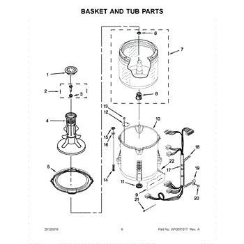 This outer tub is the main water-holding housing for a top-load washing machine. It supports the inner basket and seals the wash chamber, helping the washer contain water and direct proper wash action. What it does: