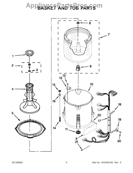 This outer tub is the main water-holding housing for a top-load washing machine. It supports the inner basket and seals the wash chamber, helping the washer contain water and direct proper wash action. What it does: