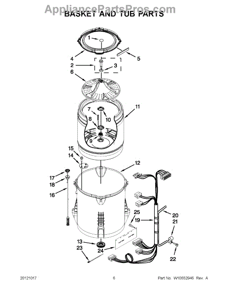 The Tub Seal is an OEM part for Whirlpool washing machines. Located between the outer tub and inner basket, it forms a barrier preventing leaks that could damage surrounding components and structures.