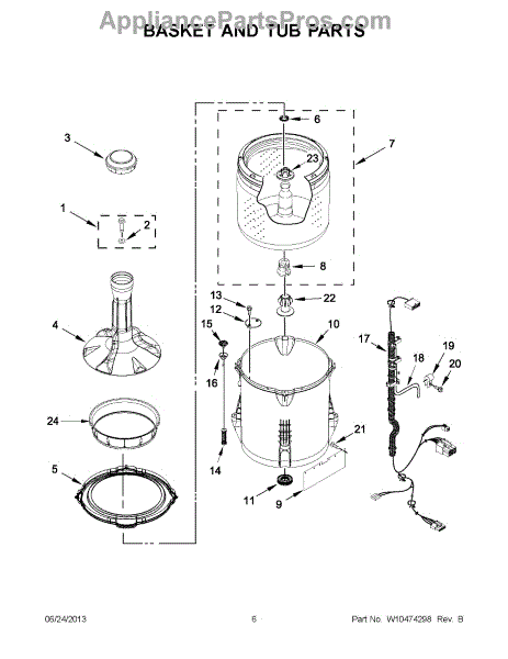 This tub ring, also called the tub cover or splash ring, snaps around the top of the wash basket to contain water and suds. Replacing a cracked ring helps stop over-the-rim leaks and protects fabrics from rough edges.