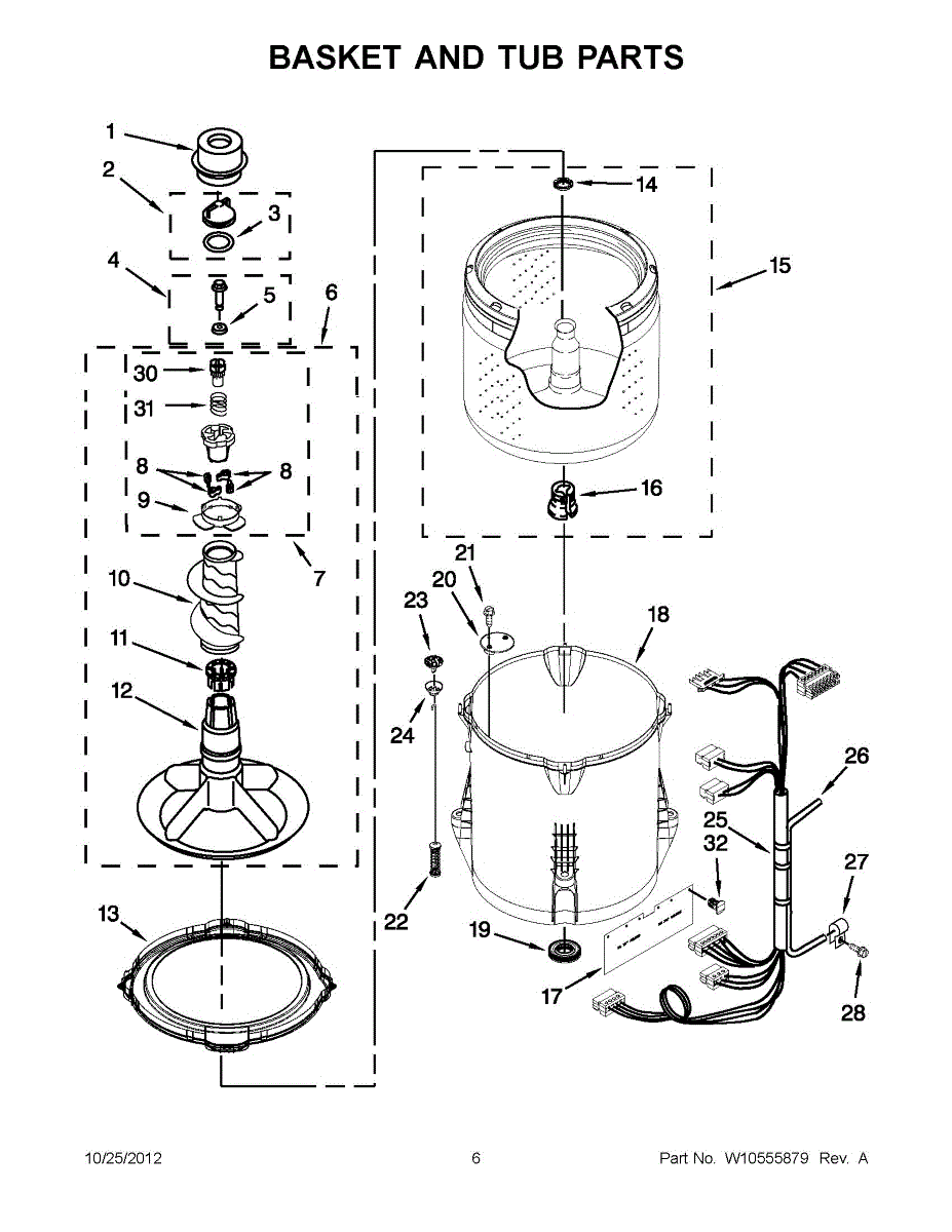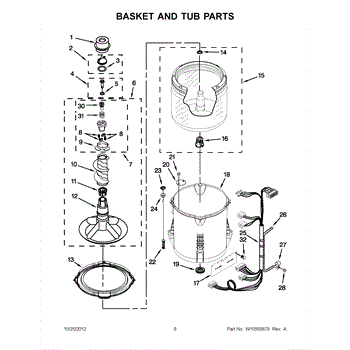 This outer tub is the main water-holding housing for a top-load washing machine. It supports the inner basket and seals the wash chamber, helping the washer contain water and direct proper wash action. What it does: