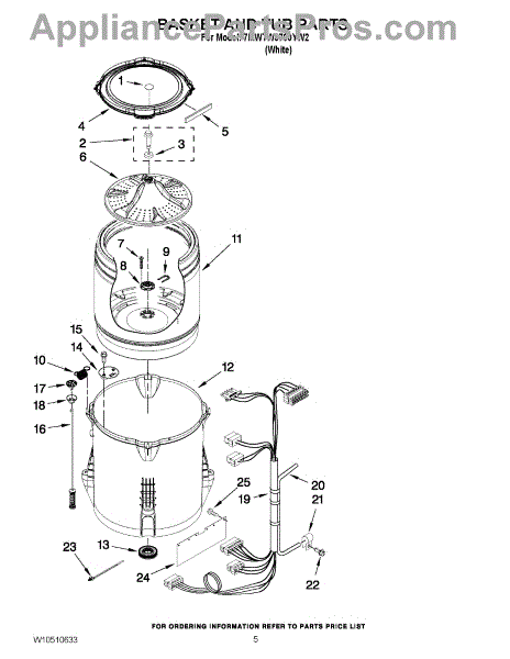 This is a Whirlpool washing machine basket. The washing machine basket holds laundry during a wash cycle. The basket may become damaged over time due to normal wear and tear, which can be exacerbated by overloading laundry or using the wrong amount of detergent. When the basket starts to become damaged or malfunction, noticeable noise increases may take place during use. Eventually, the damage will lead to the basket failing to spin. The old basket can be removed by first removing the top portion by pushing the fastening clips that hold it in place. After removing the top, reach down to remove the softener cup. Using a socket, unfasten the agitator at the bottom of the basket. After removing the agitator, the basket should easily lift out of the machine.This part is a genuine OEM product and is sourced directly from the manufacturer. It is intended for use in Whirlpool, Maytag, Kenmore, and Crosley appliances.