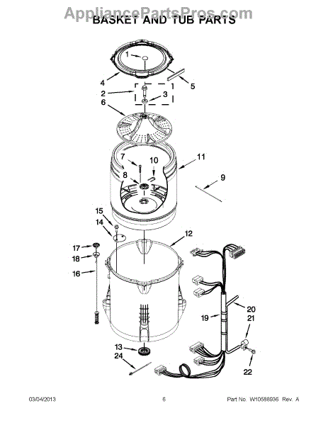 This is a Whirlpool washing machine basket. The washing machine basket holds laundry during a wash cycle. The basket may become damaged over time due to normal wear and tear, which can be exacerbated by overloading laundry or using the wrong amount of detergent. When the basket starts to become damaged or malfunction, noticeable noise increases may take place during use. Eventually, the damage will lead to the basket failing to spin. The old basket can be removed by first removing the top portion by pushing the fastening clips that hold it in place. After removing the top, reach down to remove the softener cup. Using a socket, unfasten the agitator at the bottom of the basket. After removing the agitator, the basket should easily lift out of the machine.This part is a genuine OEM product and is sourced directly from the manufacturer. It is intended for use in Whirlpool, Maytag, Kenmore, and Crosley appliances.