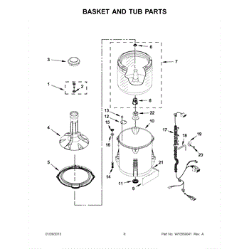 This tub ring, also called the tub cover or splash ring, snaps around the top of the wash basket to contain water and suds. Replacing a cracked ring helps stop over-the-rim leaks and protects fabrics from rough edges.
