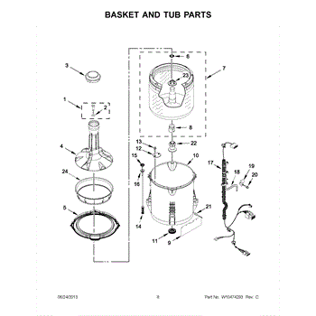 This tub ring, also called the tub cover or splash ring, snaps around the top of the wash basket to contain water and suds. Replacing a cracked ring helps stop over-the-rim leaks and protects fabrics from rough edges.