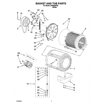 Outer tub cover assembly for front-load washers. Includes factory-installed bearing, seal, and hose. Replace if cracked, damaged, or worn from use.