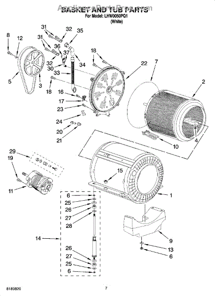 Outer tub cover assembly for front-load washers. Includes factory-installed bearing, seal, and hose. Replace if cracked, damaged, or worn from use.