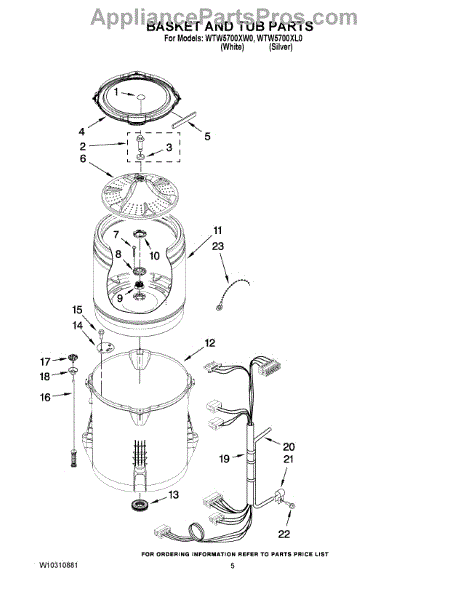 Parts for Whirlpool WTW5700XW0: 03 - Basket And Tub Parts