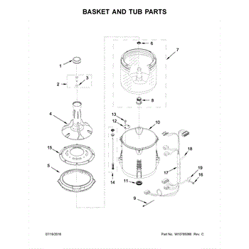 This outer tub is the main water-holding housing for a top-load washing machine. It supports the inner basket and seals the wash chamber, helping the washer contain water and direct proper wash action. What it does: