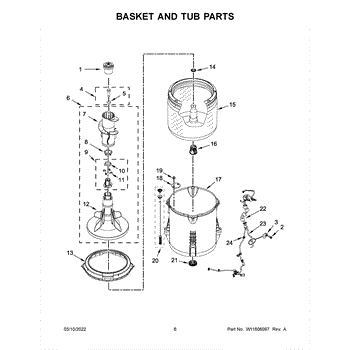 The Complete Agitator Assembly is an OEM part for Whirlpool washing machines. This assembly includes the central vertical agitator component along with the retainer ring. Together they are responsible for the agitation and rubbing motions that work to remove soils and stains from clothing during wash cycles. Causes of a bad agitator assembly can include wear and tear leading to wobbly or loose motions, cracks in plastic components from repeated impacts, or corrosion of metal components. Symptoms of a bad complete agitator assembly include: