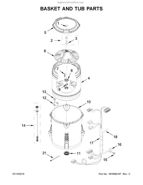 This tub ring is the replacement sealing ring that fits around the washer's outer tub to help keep the wash basket secured and reduce vibration. It restores proper sealing and alignment for reliable washer operation. What it does: