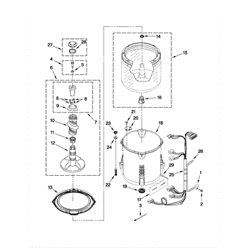 This outer tub is the main water-holding housing for a top-load washing machine. It supports the inner basket and seals the wash chamber, helping the washer contain water and direct proper wash action. What it does:
