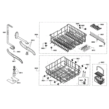 The Upper Dishrack Assembly is an OEM replacement part for Bosch dishwashers. Causes of a bad assembly include cracked or broken rack modules from years of abusive slamming during loading. Mineral buildup may also lead to jammed or stuck tines no longer gliding freely between positions. Symptoms of a bad Upper Dishrack include: