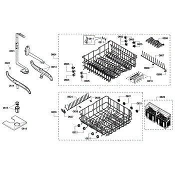 The Insert Dishwasher is an OEM part for Bosch dishwashers. It is a metal basket insert that mounts inside the lower rack of the dishwasher. This insert divides the lower rack into separate sections, allowing for more organization and better placement of dishes, cutlery, and other small items.
