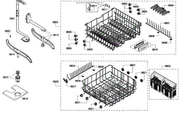 The Upper Dishrack Assembly is an OEM replacement part for Bosch dishwashers. Causes of a bad assembly include cracked or broken rack modules from years of abusive slamming during loading. Mineral buildup may also lead to jammed or stuck tines no longer gliding freely between positions. Symptoms of a bad Upper Dishrack include: