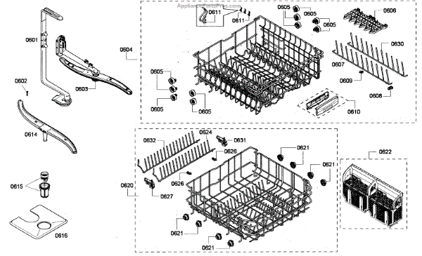 The Upper Dishrack Assembly is an OEM replacement part for Bosch dishwashers. Causes of a bad assembly include cracked or broken rack modules from years of abusive slamming during loading. Mineral buildup may also lead to jammed or stuck tines no longer gliding freely between positions. Symptoms of a bad Upper Dishrack include: