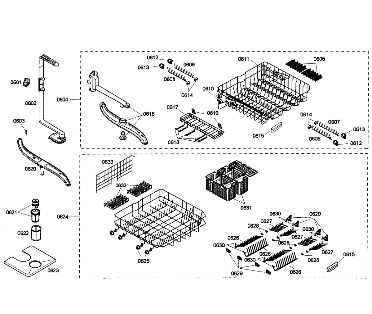 Parts for Bosch SHE58C02UC/23: Baskets Assembly Parts
