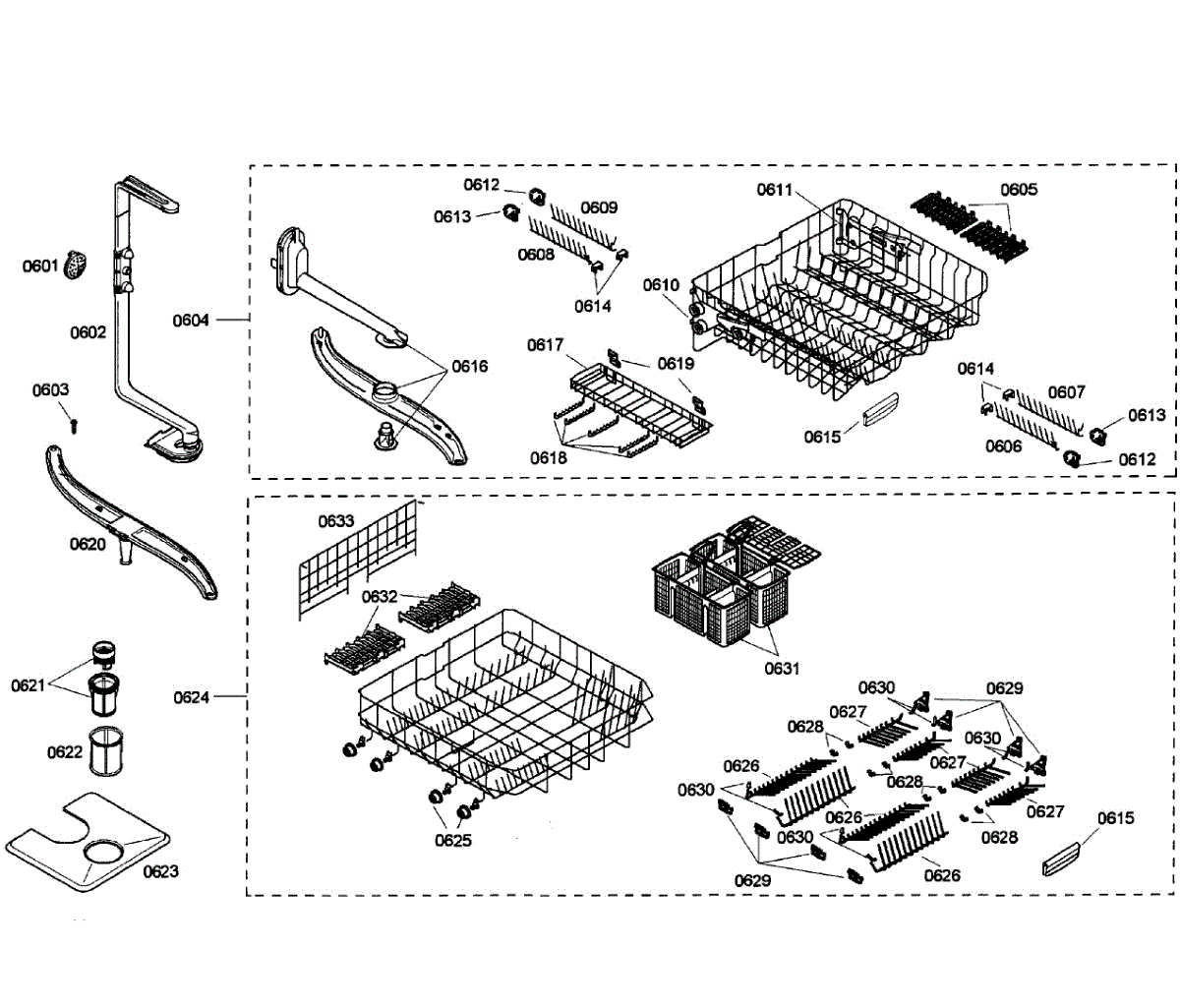 Lower dishrack assembly for dishwashers. Slides in and out for easy loading. Replace when cracked, rusted, or prongs are broken or missing.