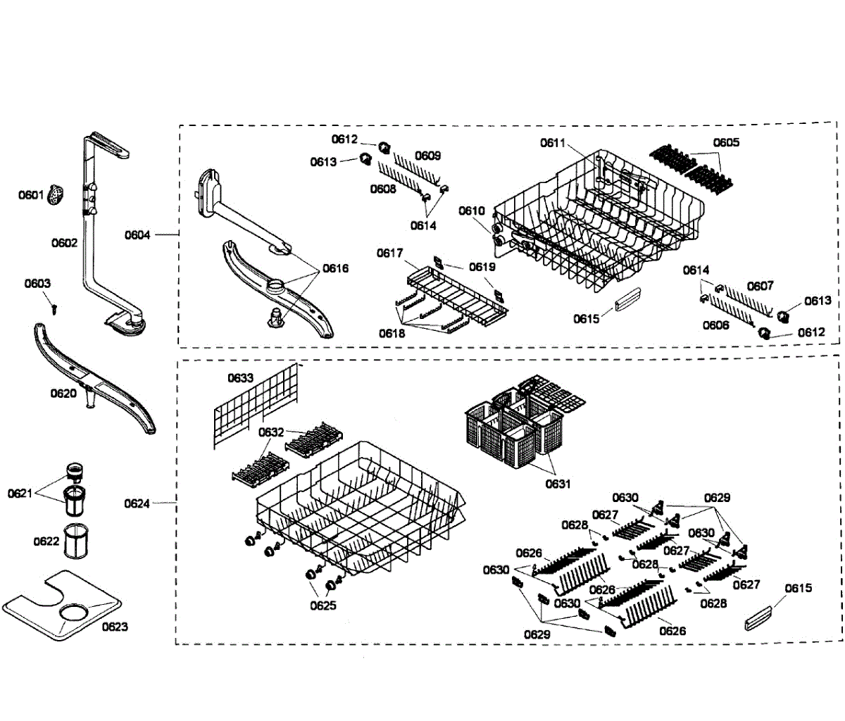 Parts for Bosch SHE58C02UC/48: Baskets Assembly Parts