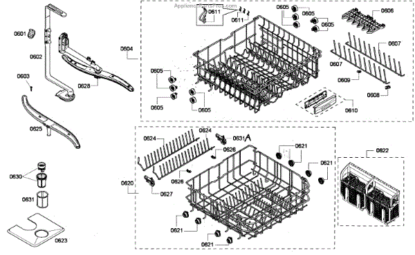 The Upper Dishrack Assembly is an OEM replacement part for Bosch dishwashers. Causes of a bad assembly include cracked or broken rack modules from years of abusive slamming during loading. Mineral buildup may also lead to jammed or stuck tines no longer gliding freely between positions. Symptoms of a bad Upper Dishrack include:
