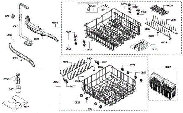 The Upper Dishrack Assembly is an OEM replacement part for Bosch dishwashers. Causes of a bad assembly include cracked or broken rack modules from years of abusive slamming during loading. Mineral buildup may also lead to jammed or stuck tines no longer gliding freely between positions. Symptoms of a bad Upper Dishrack include: