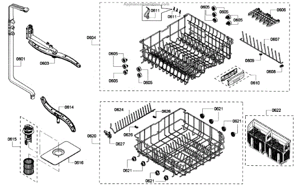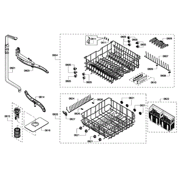 The Upper Dishrack Assembly is an OEM replacement part for Bosch dishwashers. Causes of a bad assembly include cracked or broken rack modules from years of abusive slamming during loading. Mineral buildup may also lead to jammed or stuck tines no longer gliding freely between positions. Symptoms of a bad Upper Dishrack include: