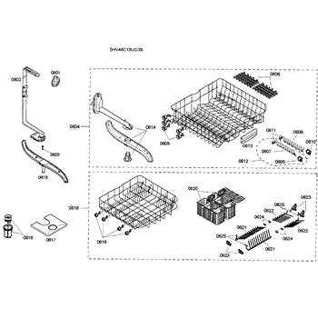 The Lower Dishrack Assembly is an OEM part for Bosch dishwashers. This assembly holds the dishes, utensils, and other items to be cleaned on the lower level of the dishwasher. It is designed to slide in and out smoothly, providing easy access for loading and unloading.