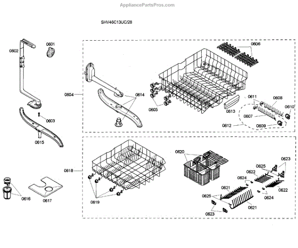 Parts for Bosch SHV46C13UC/28: Baskets Assembly Parts