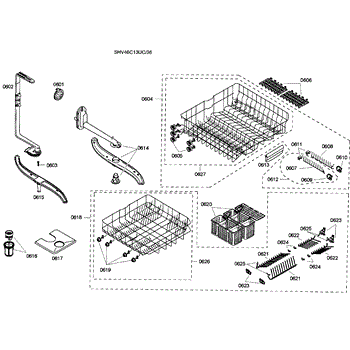 Parts for Bosch SHV46C13UC/36: Baskets Assembly Parts