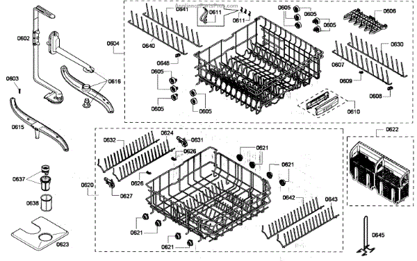 The Upper Dishrack Assembly is an OEM replacement part for Bosch dishwashers. Causes of a bad assembly include cracked or broken rack modules from years of abusive slamming during loading. Mineral buildup may also lead to jammed or stuck tines no longer gliding freely between positions. Symptoms of a bad Upper Dishrack include: