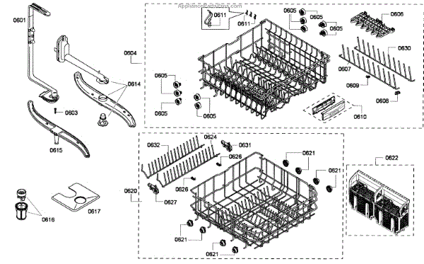 The Upper Dishrack Assembly is an OEM replacement part for Bosch dishwashers. Causes of a bad assembly include cracked or broken rack modules from years of abusive slamming during loading. Mineral buildup may also lead to jammed or stuck tines no longer gliding freely between positions. Symptoms of a bad Upper Dishrack include: