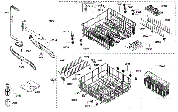 The Upper Dishrack Assembly is an OEM replacement part for Bosch dishwashers. Causes of a bad assembly include cracked or broken rack modules from years of abusive slamming during loading. Mineral buildup may also lead to jammed or stuck tines no longer gliding freely between positions. Symptoms of a bad Upper Dishrack include: