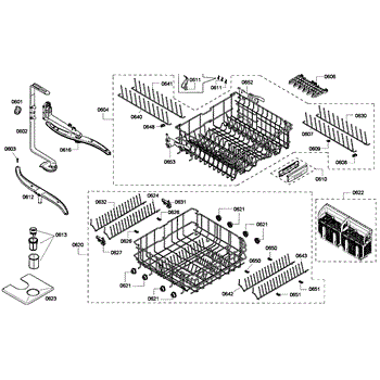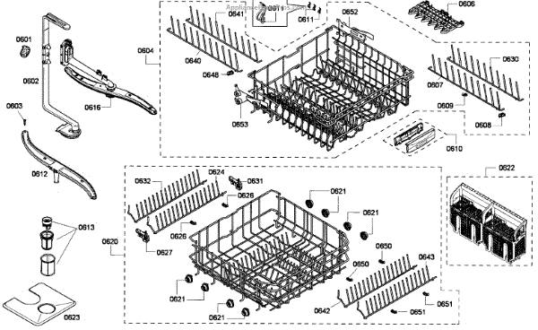 The Upper Dishrack Assembly is an OEM replacement part for Bosch dishwashers. Causes of a bad assembly include cracked or broken rack modules from years of abusive slamming during loading. Mineral buildup may also lead to jammed or stuck tines no longer gliding freely between positions. Symptoms of a bad Upper Dishrack include: