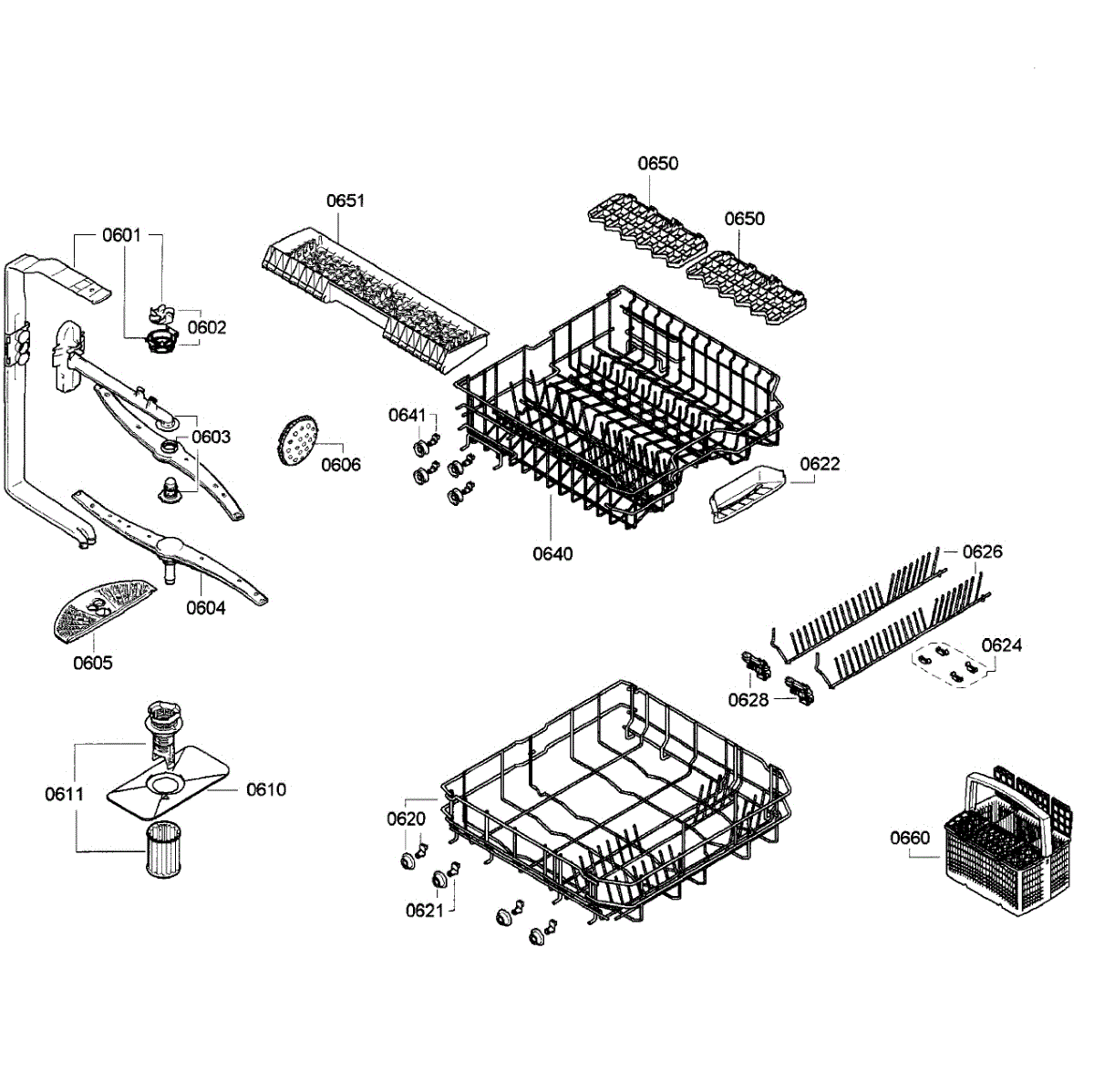 The Lower Dishrack is an OEM part for Bosch dishwashers. It provides the necessary rack space for washing dishes beneath the upper rack level.