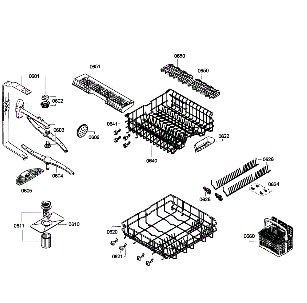 Parts for Bosch SGE63E06UC/48: Baskets Parts