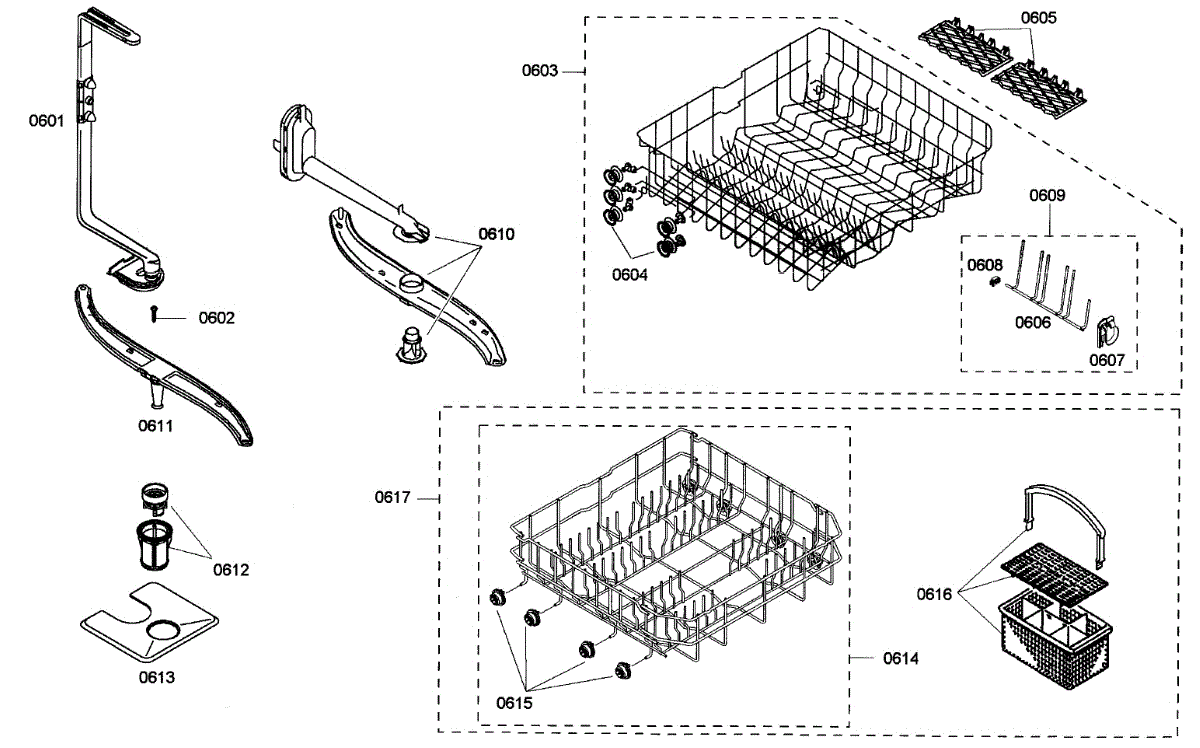 Parts for Bosch SHE33M05UC/47: Baskets Parts