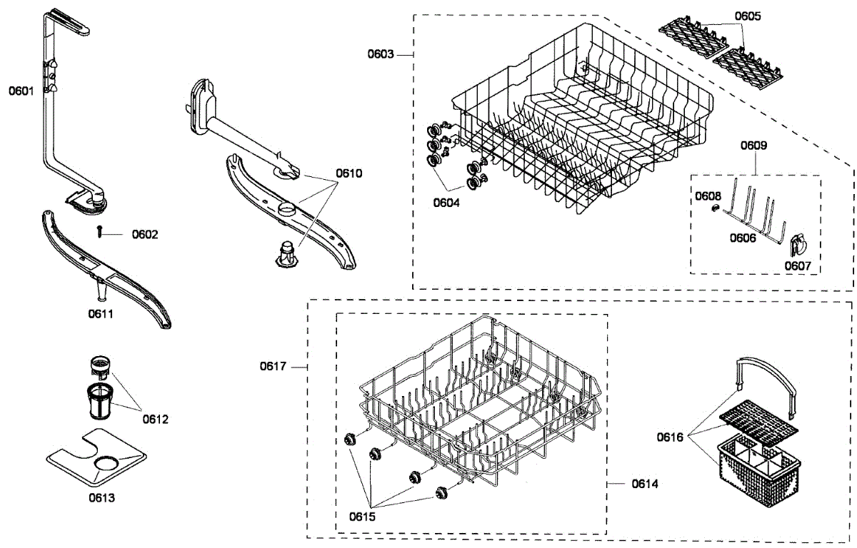 Lower dishrack assembly for dishwashers. Slides in and out for easy loading. Replace when cracked, rusted, or prongs are broken or missing.