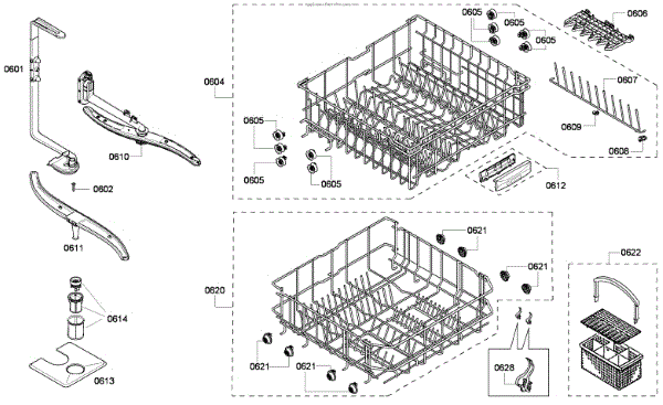 Parts for Bosch SHE33P06UC/60: Baskets Parts