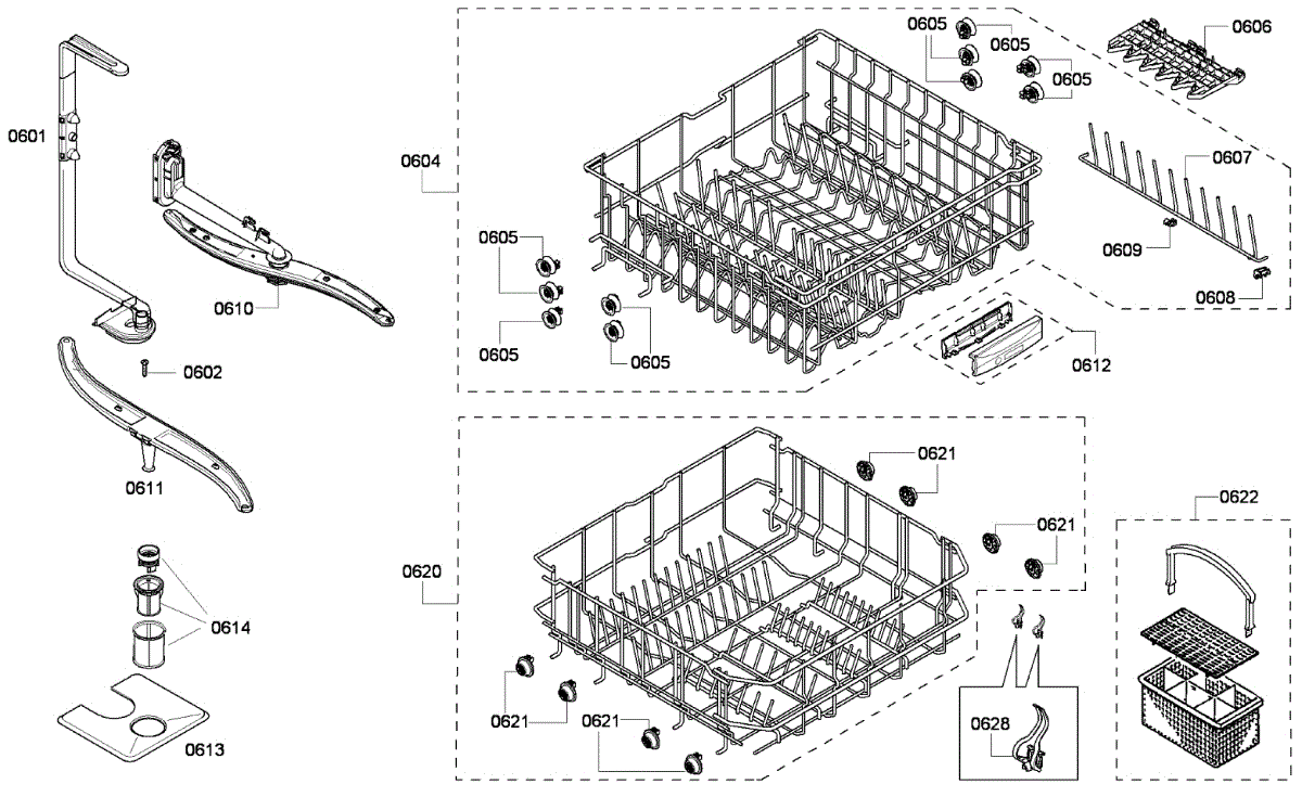 Replace your broken, cracked, or missing dishwasher silverware basket. Holds utensils securely in the lower rack during wash cycles. Includes handle.