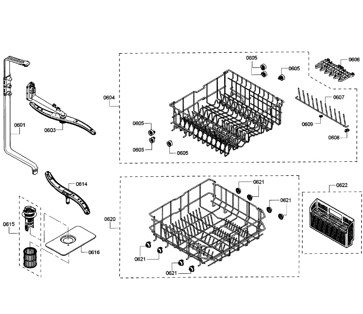 Captures debris before it enters the pump system. Replace when clogged, calcified, or damaged to prevent E22 errors and ensure clean dishes. Verify fit.