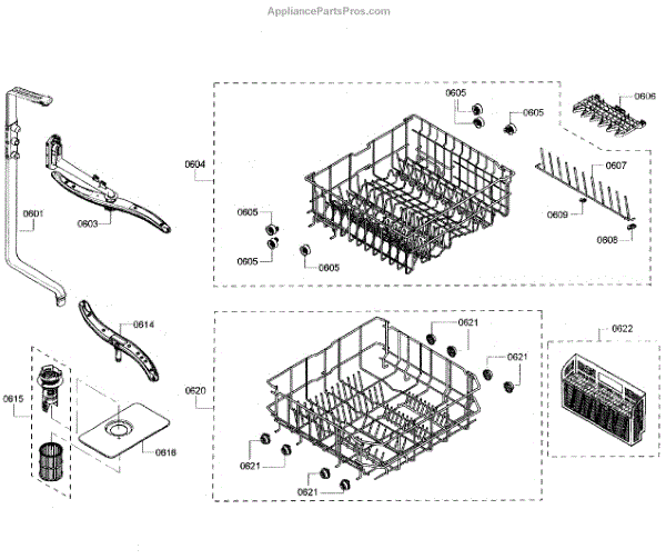 The Upper Dishrack Assembly is an OEM replacement part for Bosch dishwashers. Causes of a bad assembly include cracked or broken rack modules from years of abusive slamming during loading. Mineral buildup may also lead to jammed or stuck tines no longer gliding freely between positions. Symptoms of a bad Upper Dishrack include: