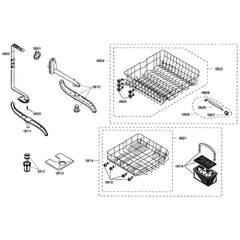 The Silverware Basket Assembly is an OEM part for Bosch dishwashers. This basket is located in the lower rack and is used to hold utensils securely during the wash cycle.