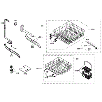 The Silverware Basket Assembly is an OEM part for Bosch dishwashers. This basket is located in the lower rack and is used to hold utensils securely during the wash cycle.