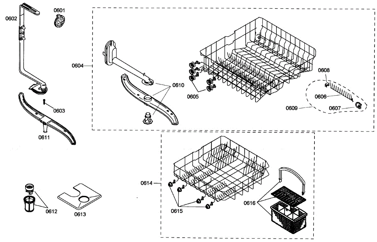 Parts for Bosch SHE42L16UC/37: Baskets Parts