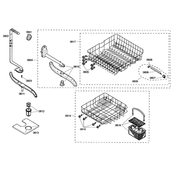 The Silverware Basket Assembly is an OEM part for Bosch dishwashers. This basket is located in the lower rack and is used to hold utensils securely during the wash cycle.