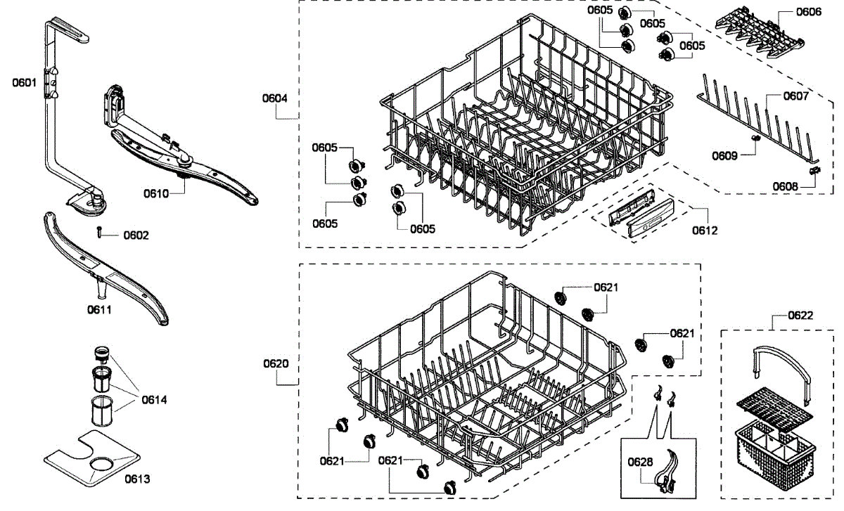 Parts for Bosch SHE43F12UC/56: Baskets Parts
