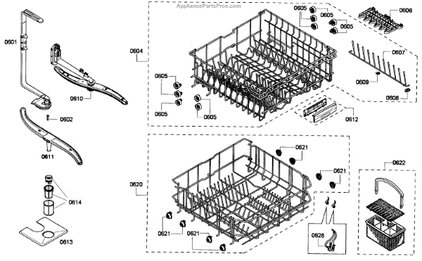 Causes of a bad assembly include cracked or broken rack modules from years of abusive slamming during loading. Mineral buildup may also lead to jammed or stuck tines no longer gliding freely between positions.
