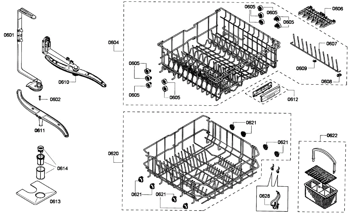 Parts for Bosch SHE43F16UC/58: Baskets Parts